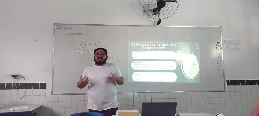 24/04/2025 – Regência na turma do 2ºA na escola Gonzaga Mota, responsável pelo BID Cícero, que em conjunto com a Renatinha e Aguida, dividiram a aula em duas partes teóricas, onde foi abordado o tema sobre Fotossíntese.