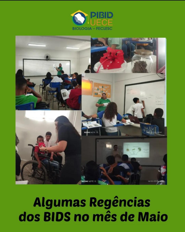 01/08/2025: publicação no Instagram oficial do PIBID Biologia FECLESC um podcast relacionado a temas de Biologia para diferentes pessoas dentro da escola Gonzaga Mota. O post consiste em duas perguntas que repercutiram no âmbito escolar entre os alunos. Essas eram: Como a cobra respira? e, Mulheres têm mitocôndria? Essas perguntas foram feitas tanto para professores como para alunos.