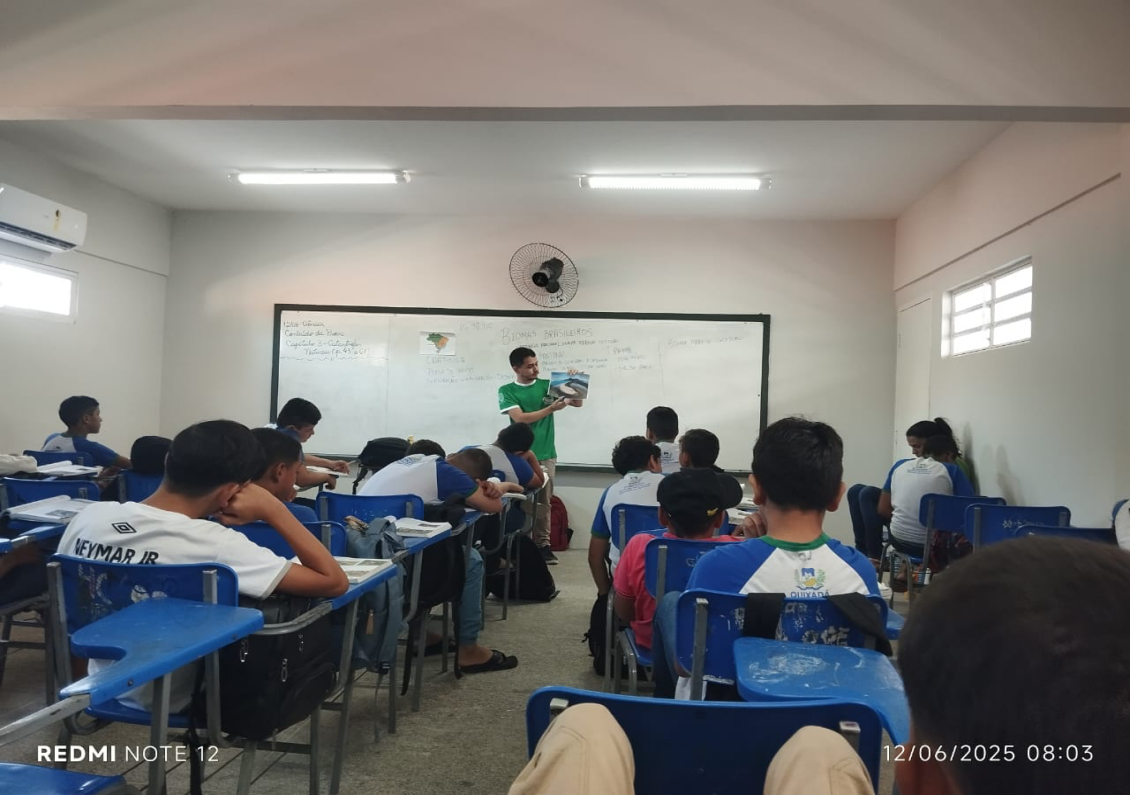 12/06/2025: (José Bonifácio) – A regência do bolsista Miguel Castro, no 7º ano A, teve o tema: Biomas Brasileiros. Ele fez a explanação do conteúdo utilizando o livro didático e anotações no quadro; os biomas estudados em aula foram a Caatinga, o Pantanal, o Pampa e o Bioma Marinho-Costeiro.
