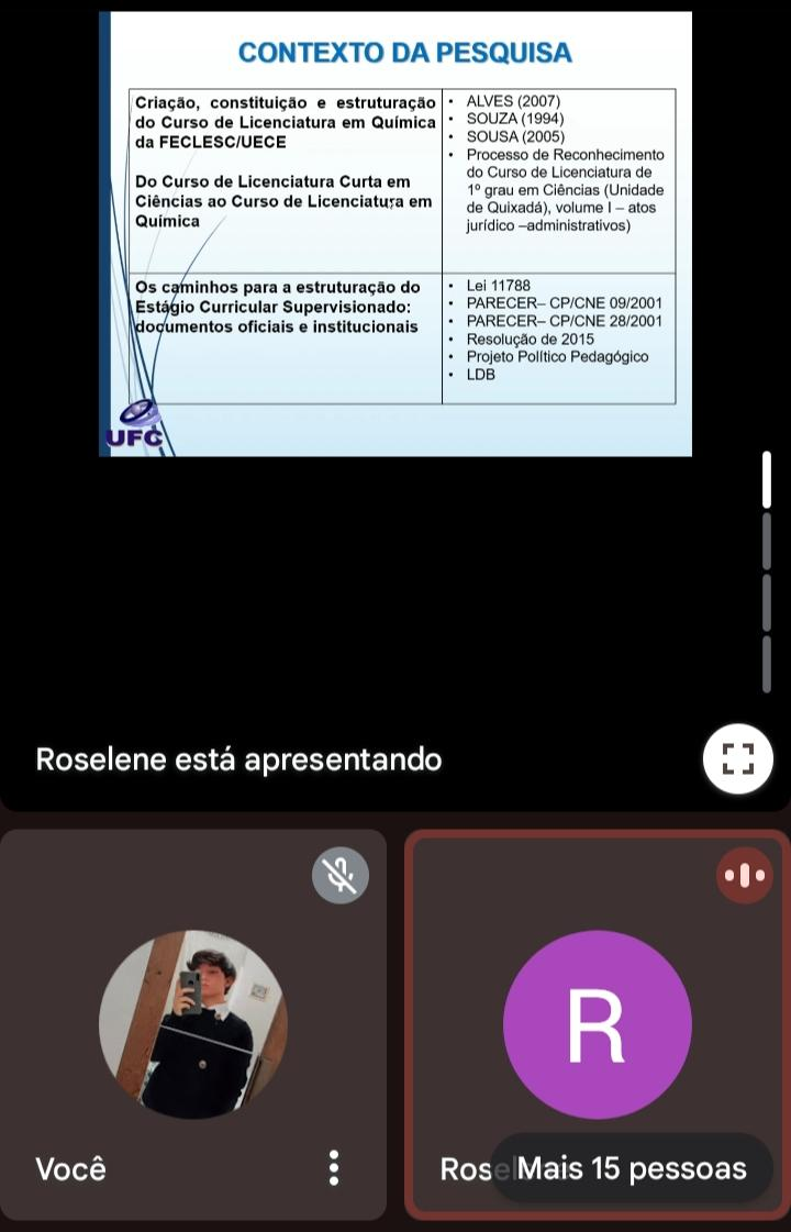 Nesse dia tivemos o início da formação intitulada: O folheto de cordel científico (FCC) como recurso educacional de ensino-aprendizagem e de alfabetização científica na abordagem da Neurociência Educacional. Essa formação está sendo ministrada pelo professor doutorando, poeta e cordelista Ênio José Gondim Guimarães e está acontecendo juntamente ao núcleo de pedagogia coordenado pela professora Maria Lenúcia de Moura. O objetivo dessa formação é compreender o que é o FCC e como utilizá-lo na educação como um recurso metodológico de ensino, a fim de propiciar o ensino-aprendizagem dos estudantes.