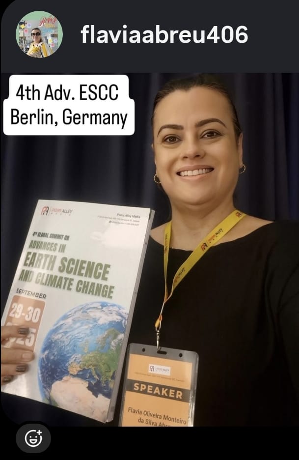 Professora Flávia Oliveira Monteiro da Silva Abreu, apresenta trabalho no Evento Internacional EARTH SCIENCE AND CLIMATE CHANGE, em Berlin, Alemanha.