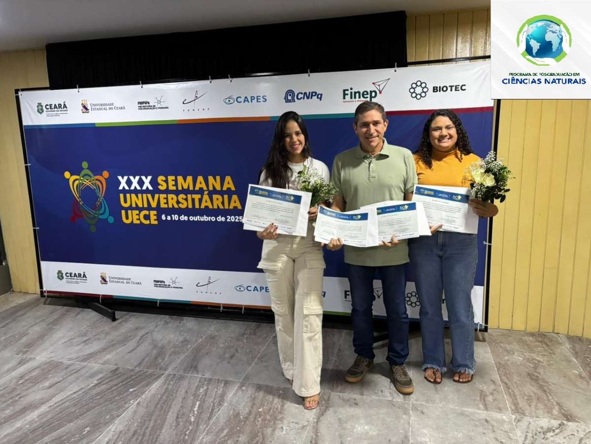 Doutoranda Vitória Bezerra Ramos consegue 2º lugar do Prêmio Garotas Fazem Ciência, na XXX Semana Universitária da UECE, na área de Ciências da Vida, com trabalho intitulado Fenologia reprodutiva das espécies vegetais do Jardim Botânico de São Gonçalo, Ceará, sob orientação do Prof. Dr. Eliseu Marlônio Pereira de Lucena.