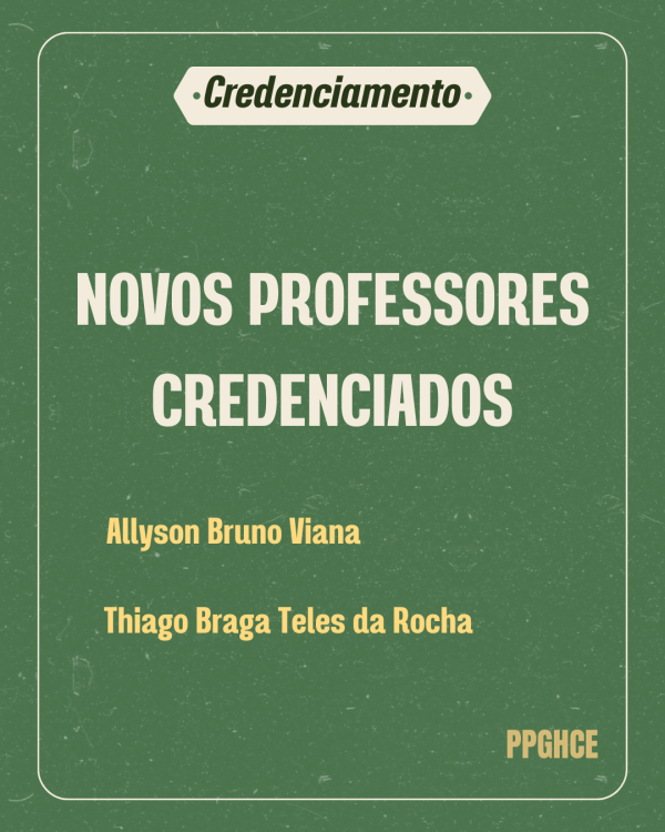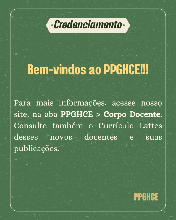 O PPGHCE anuncia o credenciamento de dois novos professores.