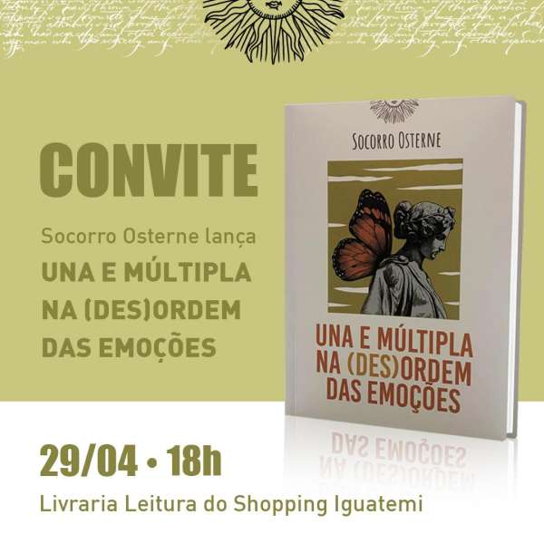A professora Socorro Osterne lançará, no próximo dia 29/04, o livro “Una e Múltipla na Des (ordem) das Emoções”, um conjunto de crônicas abordando fatos da vida cotidiana. Realizando comentários sobre a vida, os sentimentos, os dilemas, os amores, a morte, a fé, a razão e os devaneios, a docente compartilha reflexões sobre sentimentos únicos e individuais que podem ser vivenciados por seus leitores.