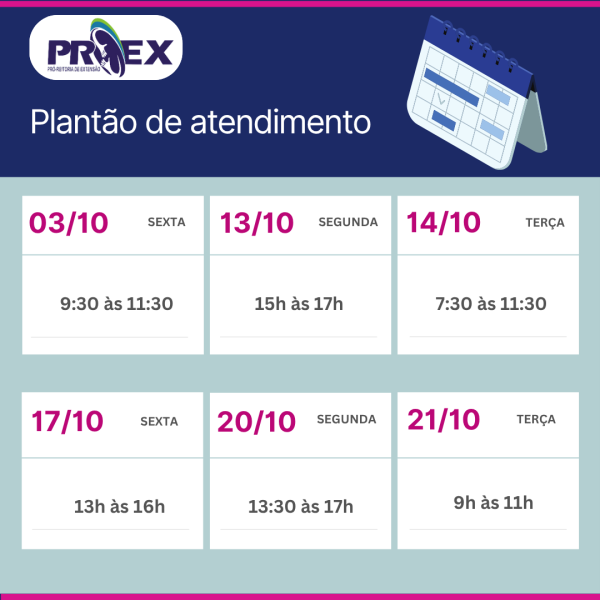 ✨ Calendário de Outubro – Plantão de Atendimento da Extensão ✨