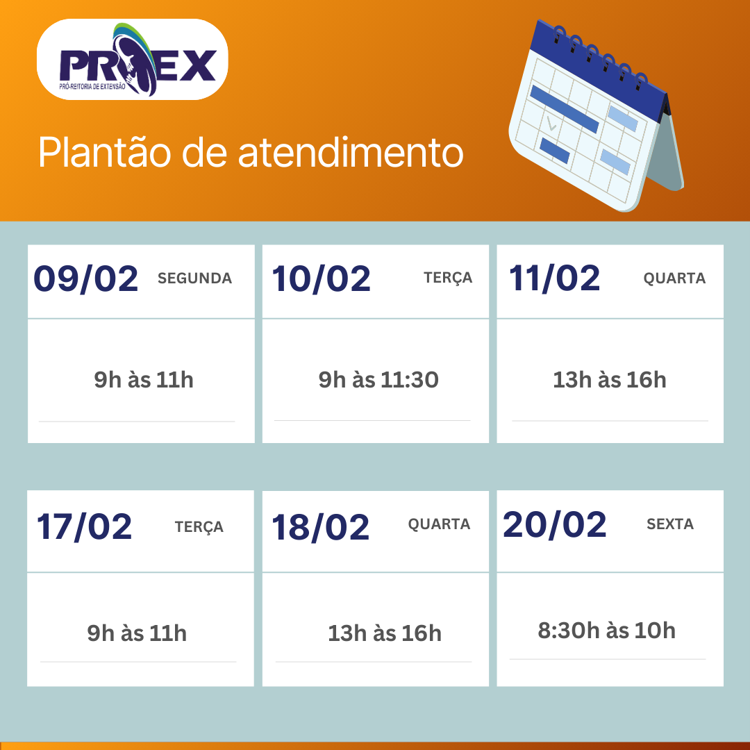 ✨Calendário de Fevereiro – Plantão de Atendimento da Extensão ✨