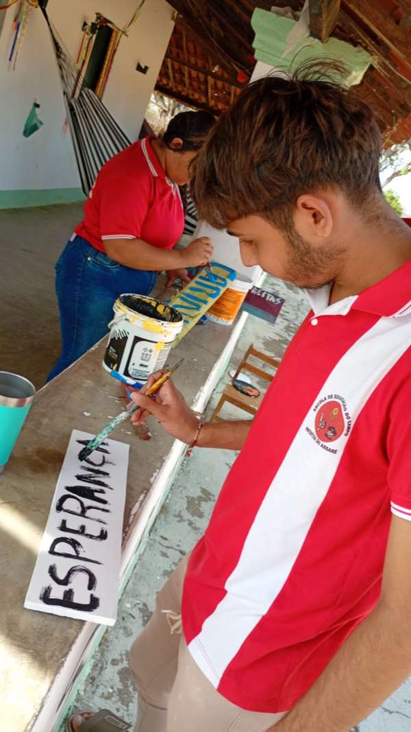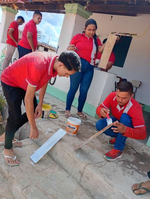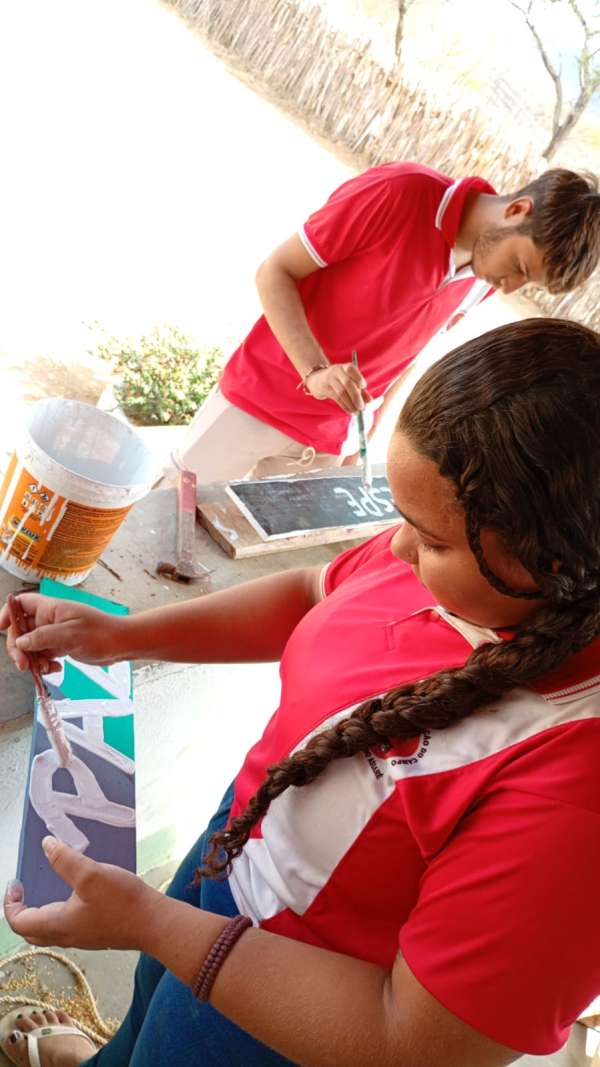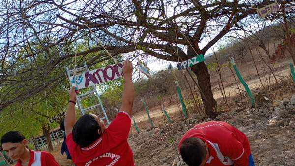 Como parte da dinâmica, os estudantes foram convidados a expressar esses valores artisticamente. Utilizando criatividade, pintaram cada palavra e as dispuseram em uma árvore, representando o crescimento coletivo e a importância das relações humanas nas práticas agroecológicas.