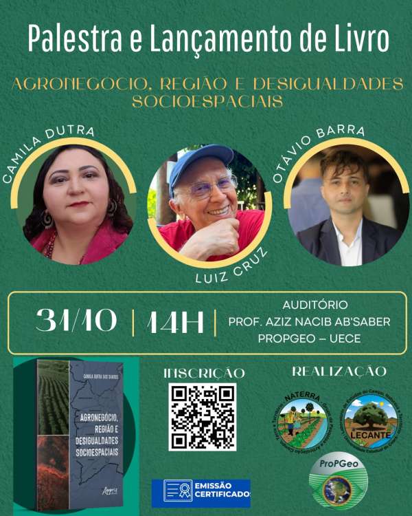Convidamos todas e todos para Palestra e Lançamento de Livro, com a temática “Agronegócio, Região e Desigualdades Socioespaciais”.